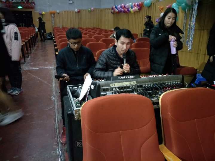 为了完美完成商院元旦晚会,工作人员从从早上八点一直坚守到现在