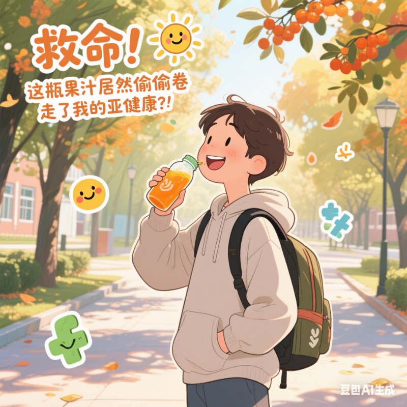 一口下去,哇塞!浓郁的果香瞬间在口腔炸开,酸酸甜甜的口感超级上头,就像把整个秋天的阳光都喝进了肚子里!神奇的是,喝完半瓶,原本昏昏沉沉的脑袋突然清醒了不少,连带着被PPT折磨得暴躁的心情都被治愈了!