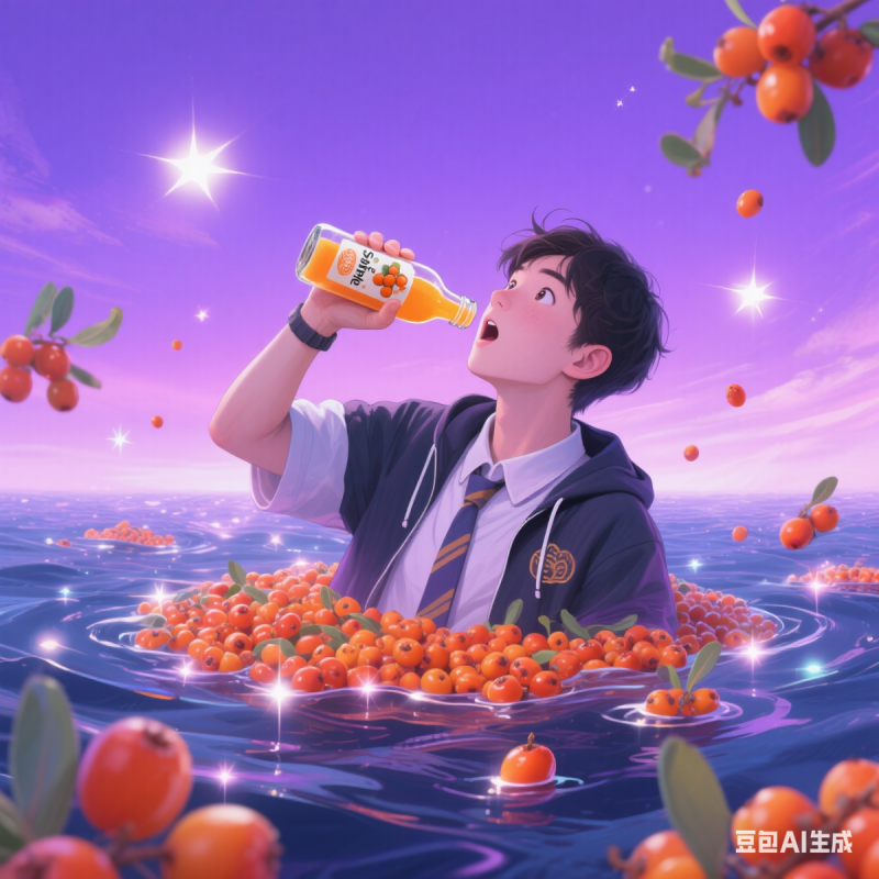 后来我专门去查了资料,才知道这小小的沙棘果居然是个隐藏的“营养大佬”!它的维生素C含量比柠檬高几十倍,堪称“天然维C炸弹”,能帮我们这些经常熬夜、饮食不规律的大学生增强免疫力;还有超多抗氧化成分,妥妥的“抗氧小能手”,拯救被熬夜摧残的肌肤!
