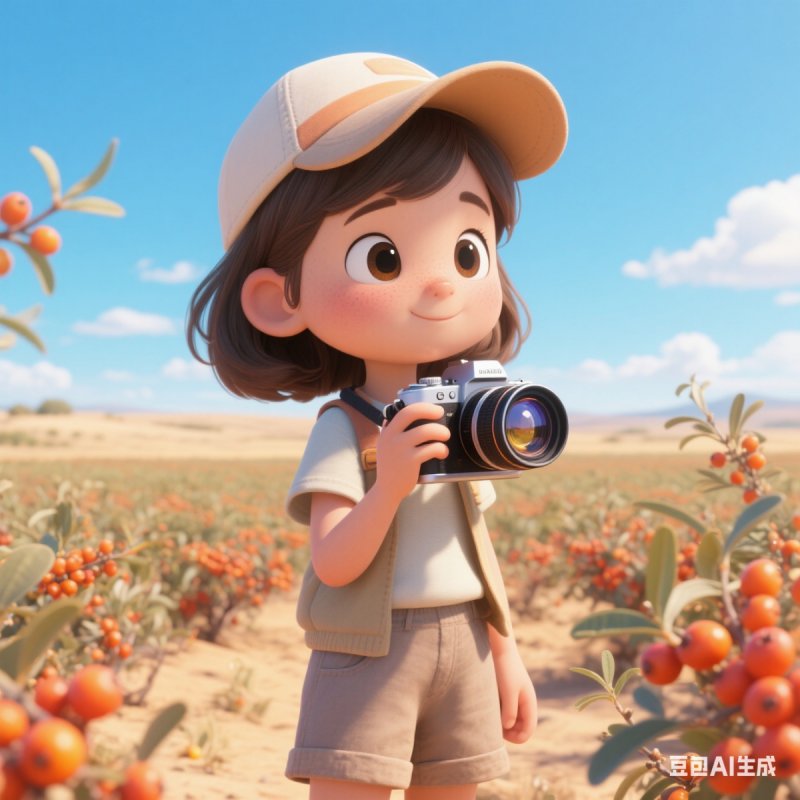 她穿梭在沙棘树之间,镜头里满是金黄的果实和翠绿的枝叶。突然,一阵微风吹过,沙棘果轻轻摇曳,发出悦耳的声响。小雅被这美妙的旋律吸引,顺着声音的方向走去。