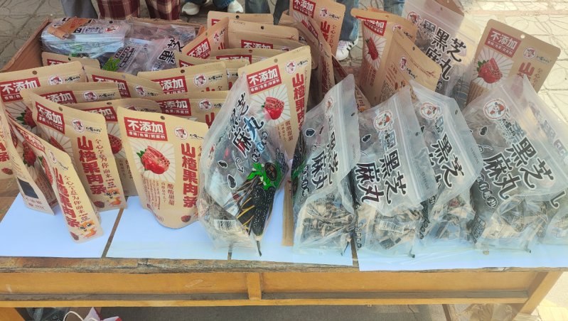 家人们!在学苑餐厅门口 今天必须给大家分享两款超棒的助农产品——醇香黑芝麻丸和酸甜山楂条!美味健康!