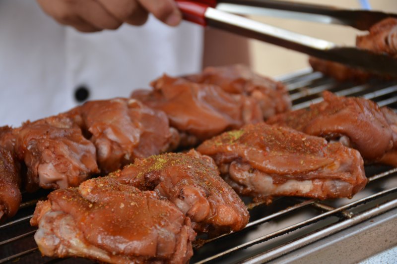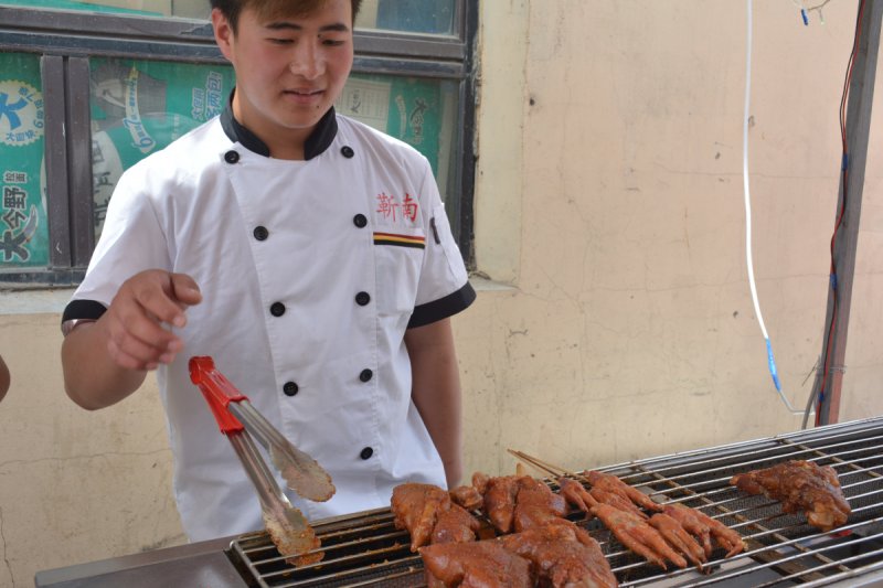 有一个小哥哥在烤猪蹄,电烤无烟技术(好吧,其实我看的是猪蹄)。